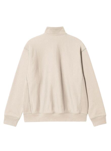 Sudadera Carhartt. Modelo Half Zip. Color beige. Cuello con cremallera. Ajuste regular. Logo y marca bordados en el pecho. Extremos elasticos acanalados.