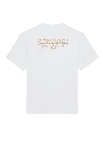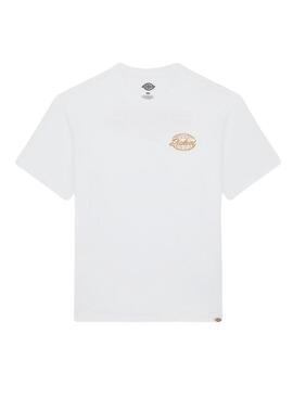 Camiseta Dickies. Modelo Globe. Color blanco. Manga corta. Cuello redondo. Logo de la marca en el pecho. Estampado en la espalda.