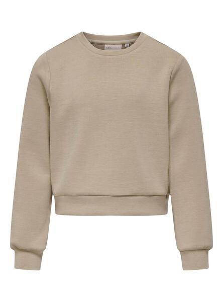 Sudadera Only. Modelo Mayra. Color beige. Cuello redondo. Corta. Puños y bajo elásticos. Diseñoen la espalda. Brillante.