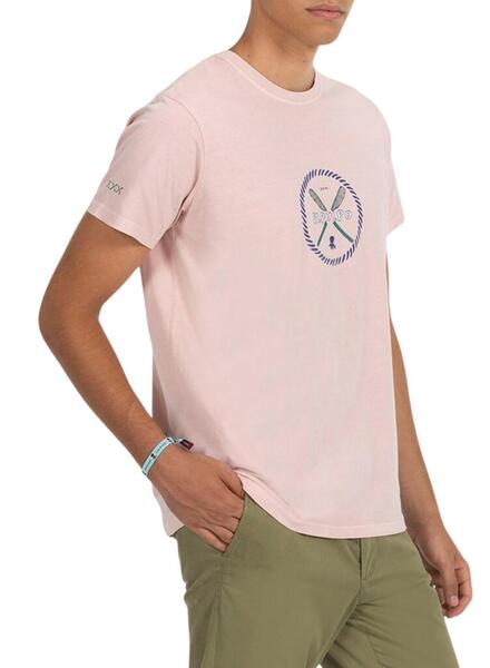 Camiseta El Pulpo. Color rosa. Cuello redondo. Manga corta. Print en pecho. Cruces bordadas a contraste en manga. Fit regular. Etiqueta de la marca bordad en un lateral.