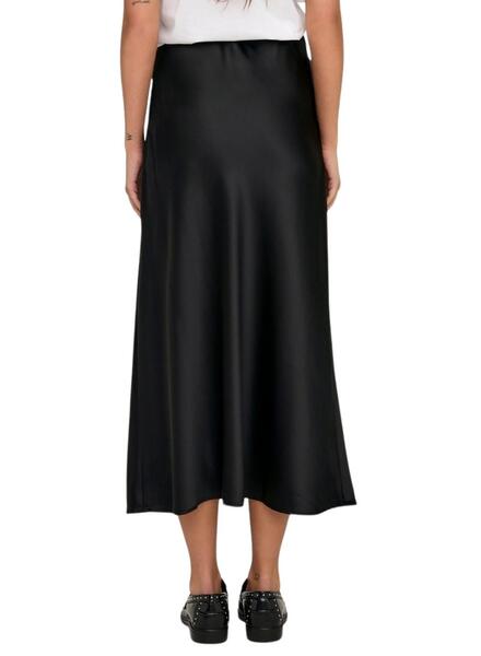 Falda Only Elma midi negro satinada para mujer