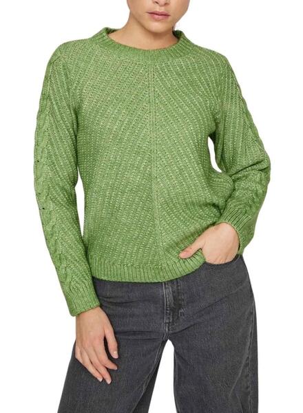 Jersey Vila. Color verde. Cuello redondo. Manga larga. Tejido de punto texturizado con ochos. Formato regular. La modelo lleva la talla S.