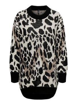 Jersey Only. Cuello redondo. Manga larga. Formato largo. Corte holgado. Estampado de leopardo. Terminaciones acanaladas en contraste. La modelo lleva la talla S.