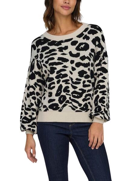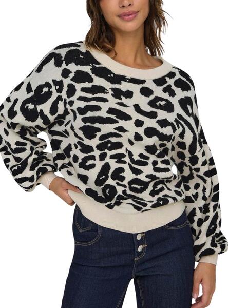 Jersey Only. Estampado de leopardo. Cuello redondo. Manga larga. Terminaciones acanaladas. La modelo lleva la talla S.
