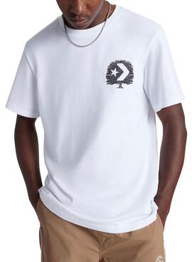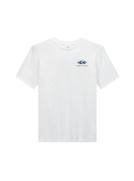 Camiseta Converse. Color blanco. Cuello redondo. Manga corta. Tejido de punto de algodón suave. Ajuste estándar. Estampados de montañas en la parte delantera y la trasera.