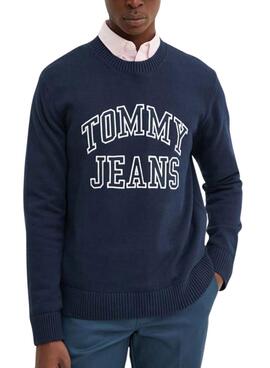 Jersey Tommy Jeans. Modelo Linear. Color gris. Cuello redondo. Manga larga. Logo bordado en el pecho.