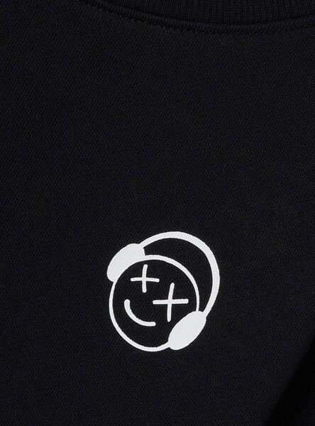 Sudadera Name It. Modelo Barne. Color negro. Cuello redondo. Extremos acanalados. Ilustración emoji estampada en el pecho. Ilustración skater en la espalda. Ajuste holgado.