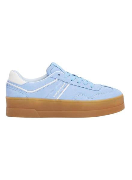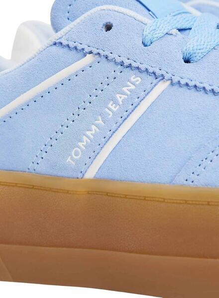 Las zapatillas Tommy Jeans para mujer combinan estilo y comodidad en un diseño moderno. Con un elegante color azul claro, estas zapatillas están confeccionadas en material textil de alta calidad que asegura durabilidad y confort. El logotipo de Tommy Jeans añade un toque distintivo a su estética minimalista, mientras que el detalle en color blanco en el talón ofrece un contraste sutil y elegante. La suela gruesa de goma marrón proporciona una excelente tracción y estabilidad, ideal para el uso diario o para complementar un look casual y urbano. Su diseño clásico con cordones garantiza un ajuste perfecto y seguro. Estas zapatillas son una elección versátil para quienes buscan incorporar un toque fresco y contemporáneo a su guardarropa. Perfectas para combinar con jeans, faldas o vestidos, permiten crear outfits que destacan por su sencillez y estilo sin esfuerzo.
