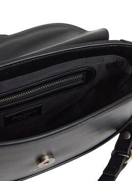 Bolso Pepe Jeans. Modelo Crisha Limited. Color negro. Correa ajustable con hebilla. Logo en relieve. Solapa con cierre magnético. Dimensiones: 25x7,5x16 cm.