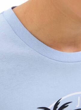 Camiseta Jack and Jones. Modelo Palm. Color azul. Cuello redondo. Manga corta. Ajuste regular. Ilustración estampada en el pecho.