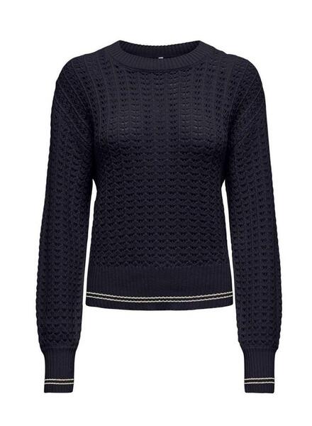 Jersey Only. Modelo Lasa. Color negro. Manga larga. Cuello redondo. Tejido perforado. Bordes acanalados. Regular fit.
