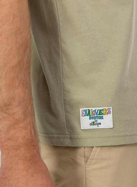 Camiseta El Pulpo. Modelo Daily Routine. Color verde. Cuello redondo. Manga corta. Ilustración estampada en la espalda y en el pecho. Ajuste regular.