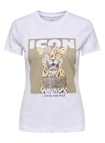 Camiseta Only. Modelo Vibe. Color blanco. Impresión gráfica en la parte delantera. Manga corta. Cuello redondo. Regular fit.