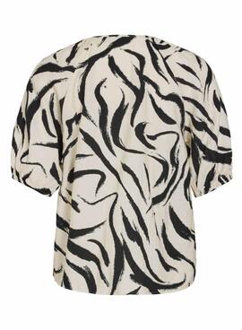 Top Vila. Modelo Clo. Color beige. Diseño estampado. Mangas 2/4. Cuello con cordón. Corte regular.