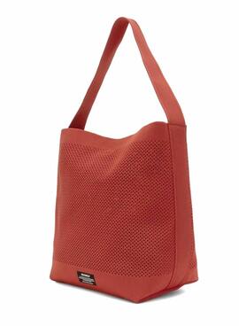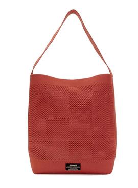 Bolso Ecoalf. Modelo Tikaalf bucket. Color coral. Punto estructuradi. Cierre con botón de presión. Asa de hombro. Etiqueta de la marca. Bolsillo interior extraíble con cierre de cremallera para pequeñas pertenencias. Dimensiones: 38 x 33 x 15 cm.
