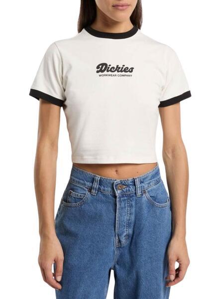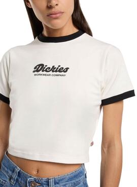Camiseta Dickies. Modelo Lewistown. Color blanco. Detalles de contraste en las mangas y el cuello. Logo de la marca en el pecho. Corte entallado.