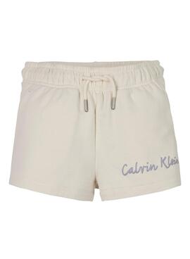 Shorts Calvin Klein Jeans. Modelo Script. Color blanco roto. Cintura elástica con cordón ajustable. Bolsillos laterales. Logo estampado en el bajo.