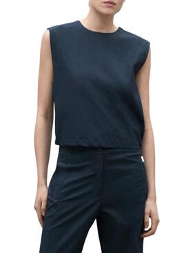 Top Ecoalf. Color marino. Sin mangas. Cuello redondo. Parte trasera con goma en el cuello y la cintura. Formato corto. Corte regular. La modelo lleva la talla S.