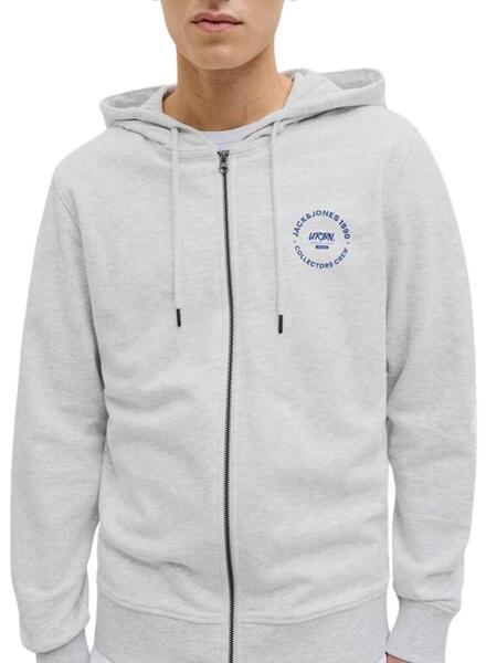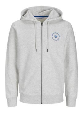 Sudadera Jack and Jones. Modelo Simon. Color blanco. Manga larga. Capucha ajustable con cordón. Cierre de cremallera. Logo de la marca en el pecho. Corte holgado.