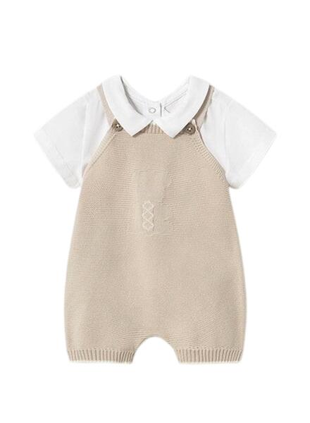 Conjunto Mayoral. Tejido tricot suave. Camiseta en color blanco. Color blanco y beige. Tiras atrás cruzadas.