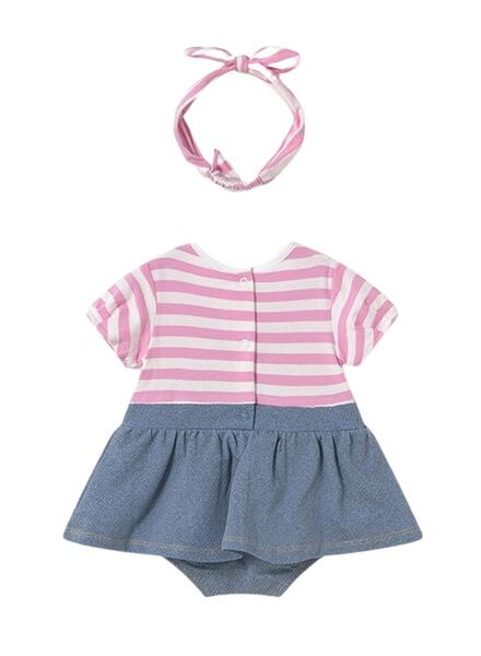 Pelele Mayoral. Cuello redondo. Estampado de rallas. Diadema incluida. Botones en la espalda. Botones en la falda.