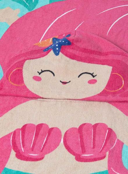 Toalla para playa Mayoral. Con capucha. Estampado de "sirena". Color azul y rosa. Inspirado en el mar.