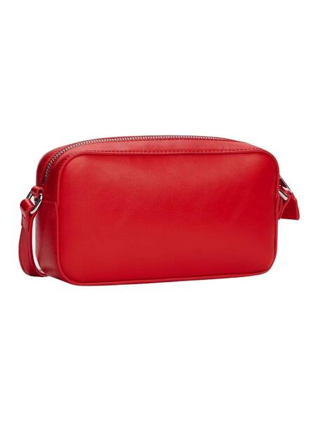 Bolso Tommy Jeans. Modelo Convertible Camara. Color rojo. Forma rectangular. Cierre con cremallera. Correa de hombro ajustable. Logo de la marca en el frontal. Capacidad de 1.25 litros. Dimensiones: 21 x 5 x 12 cm.