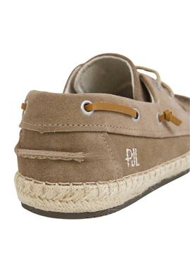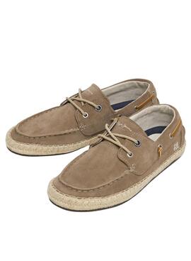 Zapato Náutico Pepe Jeans. Modelo Tourist. Color beige. Cierre con cordones. Pespuntes en contraste. Logo bordado lateral. Suela de goma. Entresuela de yute.