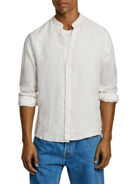 Camisa Pepe Jeans. Modelo Asher. Color blanco. Cierre con botones. Logo bordado a tono. Tejido con mezcla de lino y algodón. Manga larga. Ajuste regular. Cuello mao.