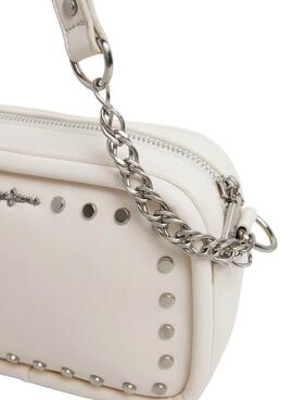 Boslo Pepe Jeans. Modelo Brianae. Color beige. Con tachuelas. Cierre con cremallera. Correa ajustable. Estilo bandolera. Detalles en cadena metálica. Logo plateado. Dimensiones: 20 cm x 5.5 cm x 14.5 cm.