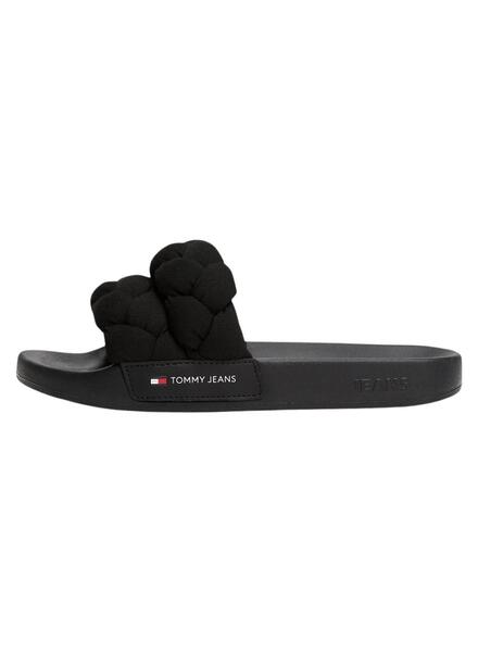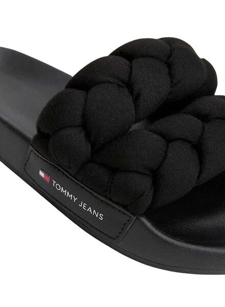 Sandalias Tommy Jeans. Modelo Braided. Color negro. Estilo pala. Parte superior con doble tira trenzada. Suela de goma. Plantilla con forma anatómica. Logo lateral.