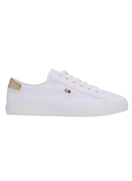 Zapatillas Tommy Jeans Modelo Vulc. Color blanco. Cierre con cordones. Logo metálico lateral. Talón en color dorado. Parte superior de loneta de algodón. Suela de goma. Estilo básico.