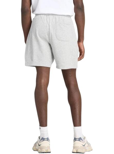 Pantalón corto New Balance. Modelo Sport Essentials. Tejido French Terry suave. Color gris. Corte relajado. Bolsillos laterales. Un bolsillo trasero. Logo bordado en la parte delantera.