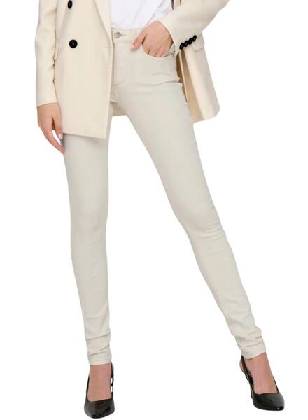 Pantalón vaquero Only. Modelo Blush. Color beige. Tiro medio. Cierre con botón y cremallera. Cinco bolsillos. Corte super skinny. Tejido elástico.