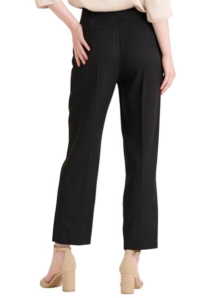 Pantalón Naf Naf. Modelo básico de traje. Cierre con botón metálico y cremallera. Bolsillos laterales. Raya de plancha. Corte cropped. Estilo básico.