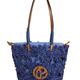 Bolso Pepe Jeans. Modelo Gina Sunrise. Color azul. Tejido de rafia con detalles bordados en forma de flor. Forro interior de algodón a rayas con cierre de cordones. Dos asas cortas en efecto piel. Parche de monograma cosido en la parte frontal. Etiqueta con logo PEPEJEANS en la parte posterior. Dimensiones: 22 cm x 11 cm x 20 cm.