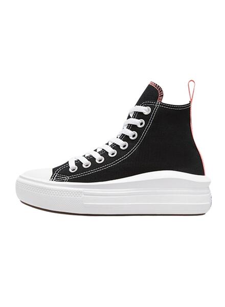 Zapatillas Converse. Modelo Chuck Taylor All Star Move Platform. Color negro. Tejido de lona. Corte alto. Con plataforma. Plantilla SmartFOAM. Etiqueta tejida. Logo posterior. Tirador en contraste. Se recomienda pedir una talla menos.
