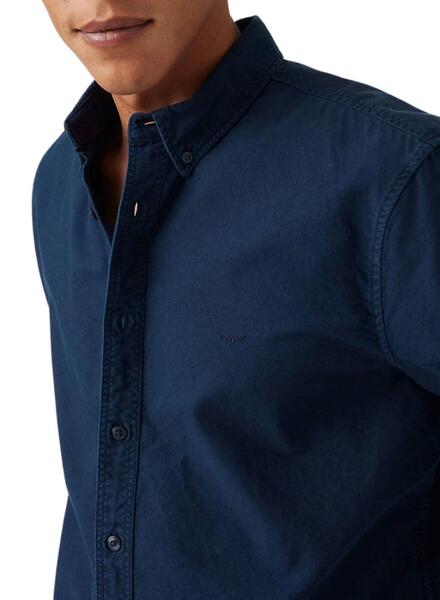 Camisa Levis. Color marino. Manga larga. Cierre delantero con botones. Corte holgado. Tejido suave. Cuello con botones. El modelo lleva la talla M.