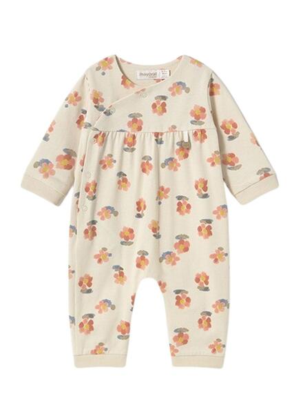 Pijama largo Mayoral. Cuello redondo. Cierre principal con botones. Manga larga. Puños y bajo elástico. Estampado de flores.