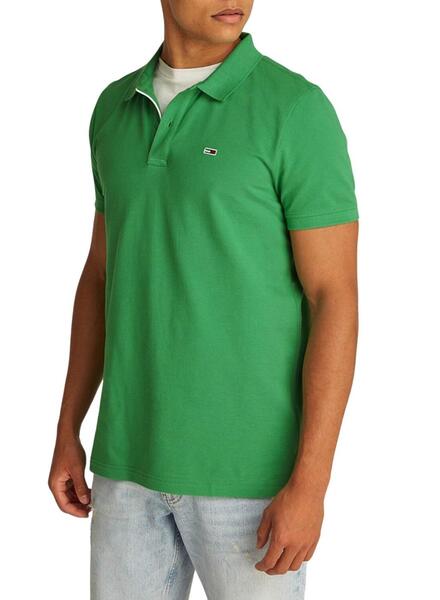 Polo Tommy Jeans. Modelo Slim. Color verde. Manga corta. Logo bordado en el pecho. Cuello camisero con dos botones a tono. Corte ligeramente ajustado. Estilo básico.