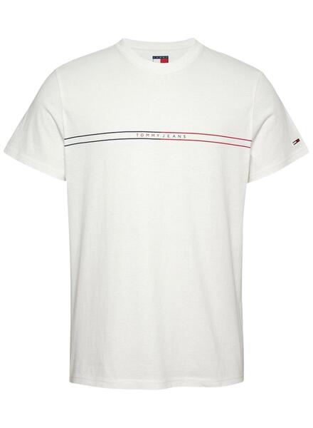 Camiseta Tommy Jeans. Modelo Graphic. Color blanco. Slim fit. Cuello redondo. Manga corta. Marca estampada en el pecho con doble banda. Logo bordado en la manga.