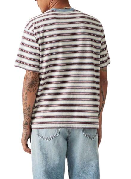 Camiseta Levis. Modelo Vintage. Color blanco, granate y azul. Estampado horizontal. Cuello redondo. Manga corta. Logo bordado en el pecho. Ajuste holgado.