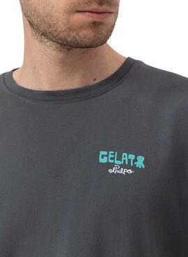 Camiseta El Pulpo. Modelo Gelato. Color gris antracita. Cuello redondo. Manga corta. Ajuste regular. Ilustración estampada en el pecho y en la espalda.