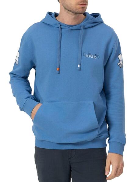 Sudadera El Pulpo. Modelo Logo. Capucha con cordón ajustable. Color azul. Extremos acanalados. Ajuste regular. Bolsillo exterior canguro. Marca estampada en el pecho. Logo estampado en la espalda y en la manga. Detalles en color rojo.