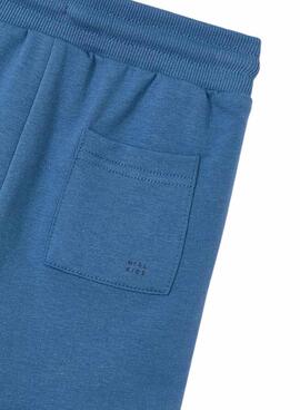 Bermuda Mayoral. Color azul. Citura de goma ajustable con cordones. Tejido ligero y suave de felpa. Bolsillos laterales. Un bolsillo trasero.
