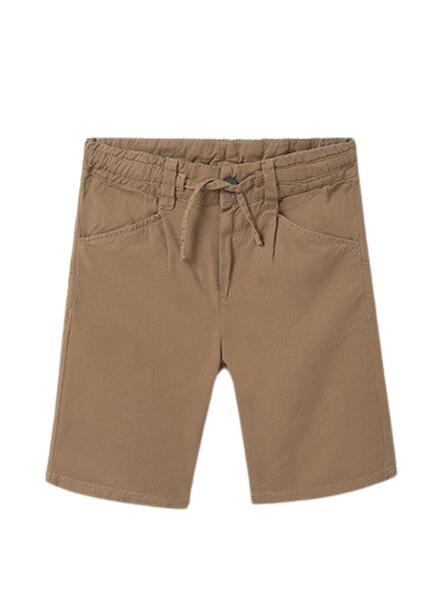 Bermuda Mayoral. Color camel. Corte holgado. Cintura con goma y cordones. Cierre con cremallera y botón. 4 bolsillos. Tejido ligero.