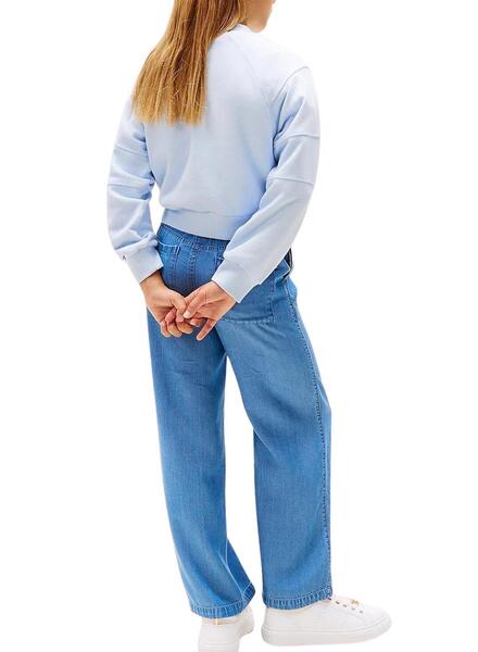Sudadera Tommy Jeans. Modelo Script. Color azul claro. Cuello redondo. Manga larga. Extremos acanalados. Corte cropped. Logo bordado en el pecho. Ajuste holgado. Costuras decorativas. Logo bordado.