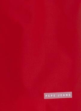 Bañador Pepe Jeans. Modelo Piping. Color rojo. Cintura elástica con cordón. Logo engomado en el bajo. Vivo en color azul marino.