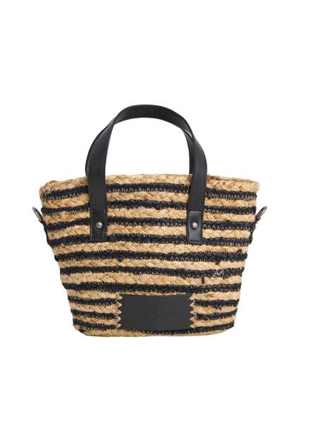 Bolso Pepe Jeans. Modelo Fiona. Color natural y negro. Cierre con cremallera. Doble asa superior. Patrón a rayas. Correa de hombro ajustable y extraíble. Logo grabado. Dimensiones: 20 (alto) x 32 (largo) x 16 (ancho) cm.