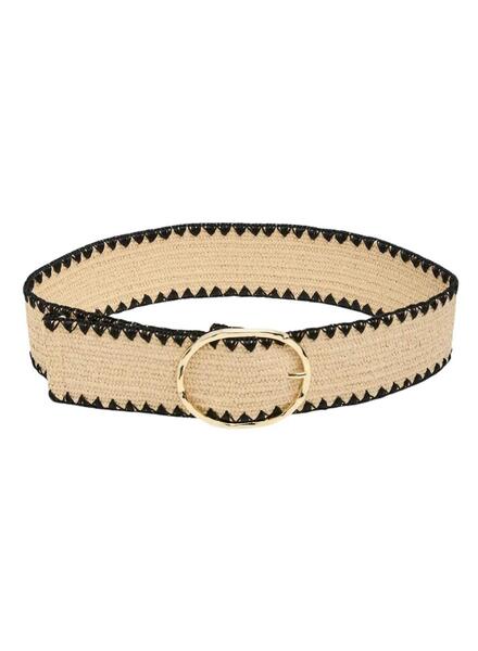 Cinturón Pieces. Modelo Lydia Contrast Waist. Color beige. Detalles a contraste. Hebilla ajustable dorada.
